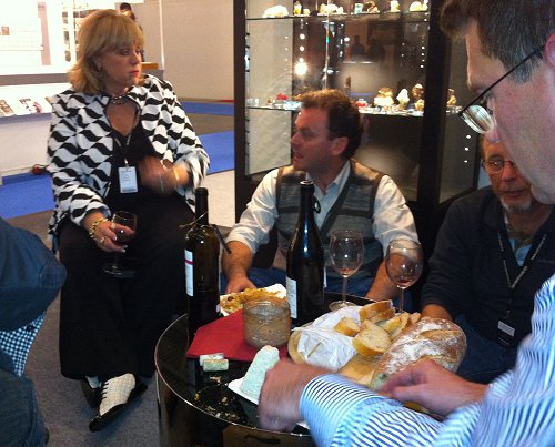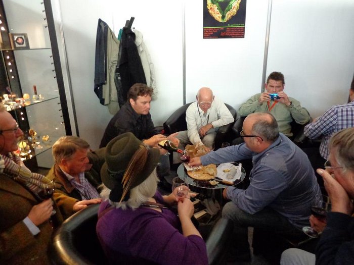 At the end of each day there was a gathering in the booth of Laurent Thomas to enjoy French, wine, cheese, salami and bread.