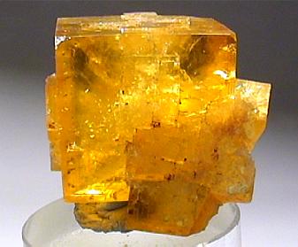 5 x 3.5 cm crystal of bright lemon yellow fluorite with a distinct phantom about 4 mm below the surface of the crystal.