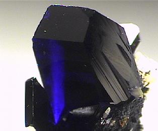 2.1 x 1.3 cm gemmy and lustrous fully terminated crystal of azurite.  This crystal was not photographed backlit!