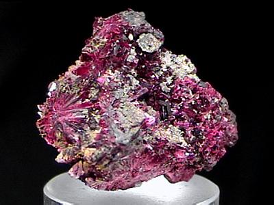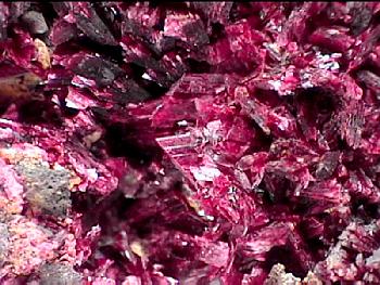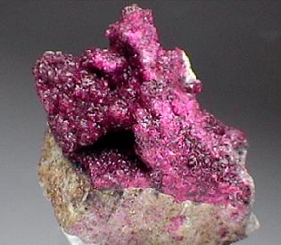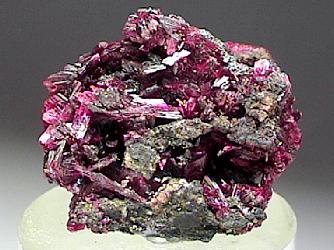 3.5 x 3 cm specimen of nearly pure erythrite crystals as individuals and intergrown clusters to 1 cm in length.
