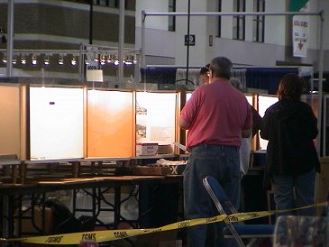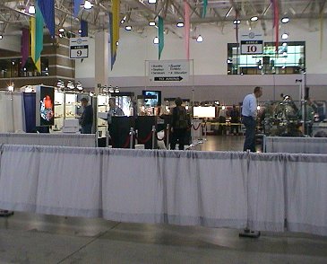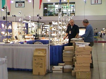 A general shot of the Convention Center floor at 10:00 am Feb 11th,  On the right is Steve Perry working on the display in his booth.