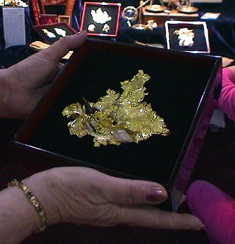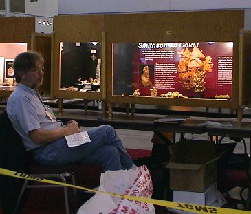 On the left is Paul Pohwat of the Smithsonian Institution putting final touches on their gold display.