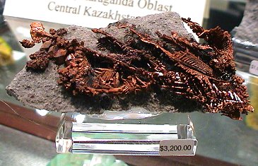 I did venture out to the Westward Look Resort show for one afternoon and stuck my head into a few of the rooms there. Again, there was really not much in the way of anything new other than some feathery or herring bone habit copper specimens from Kazakhstan.  Mike Bergman brought these out of eastern Europe and they were quickly dispersed to other dealers.  This is not a new locality for copper but the habit is quite remarkable with the feathery configuration of many of the specimens.  I saw specimens from this find in the hands of Scott Werschky and Alan Day of Miner's Lunchbox who were set up at the Westward Look.
