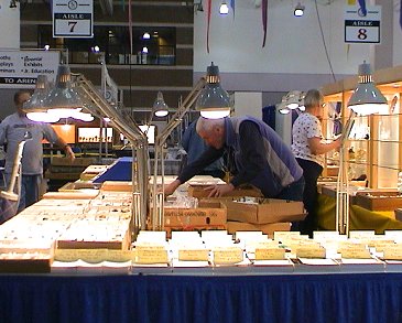 The 11th was set up day at the main show.  This year, as indicated earlier, the theme for the show is Gold.  That would likely explain the increased presence of the Tucson Police at the show and the rather hard ball tactics being employed by the show organizers as it related to being able to shop around and see what everyone had brought to the show. There were several incidents even of people being ejected from the Convention Center who were there to purchase specimens.  I think that this could have been handled differently by the Tucson Show organizers as there was some obvious discrepancies in their application of this "rigid" policy.  I saw many affluent collectors freely roaming about the show area making purchases while several people of obvious foreign ancestry were ushered out by the Police... hmm...