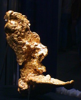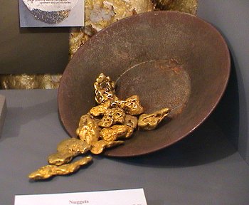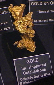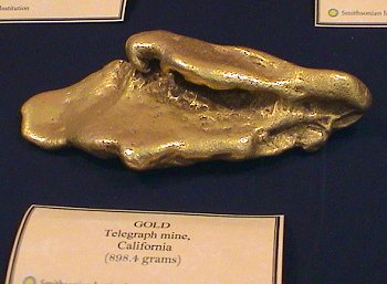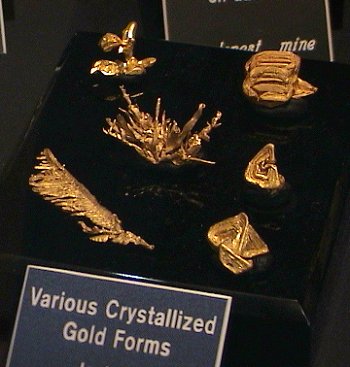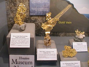 The Houston Museum had a fine array of gold specimens including these large clunker nuggets.  There were also many fine crystallized specimens as well.
