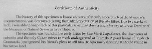 Marshal Sussman. Isasias Casanova had a lot to do with the procurement of this rare and desirous specimen with Cuban pedigree!!
