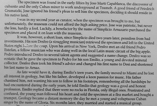 As with any show there are moments and specimens that stand out.  For me the best time was the day spent with Mike Groben and talking with some of the people who've been attending Tucson for 30-40 years. The best rock I saw here was that 5+ carat cut benitoite that Rick Kennedy had here.  I know it is a cut stone, and benitoite no less, but the magnitude of it is overwhelming.  You should see that rock in daylight! Wow! My biggest screw up (there is always one at every show) was actually a verification that my time has come to get glasses. I bought a Tsumeb mimetite specimen for "$35.00" along with many other selected specimens from a well known dealer. I wrote a check for the invoice without much regard and took them all back to my apartment.  Upon casually inspecting the invoice, I was surprised to see an item listed as "Mimetite - $350.00". Sure enough, looking a bit more carefully at the label, the price was in fact $350.00. What made this all a bit tougher to swallow was the fact that all of the labels that came with the specimen were still there. (That is actually kind of rare these days as most dealers try to conceal their sources.) To my shock, horror, surprise, delight(?), all of the above and more, was one of my old labels in the stack.  I had previously owned this specimen!!!  And, I had just bought it back for a prettier and shinier penny than I had the first time...What a maroon!  The people most missed at Tucson? The Rocksmiths.... The saddest news was that of the death of Dave Shannon.  He will be sorely missed....