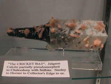 two calcite specimens of interest - the famous "Cricket Bat" and the gem calcite on the right.