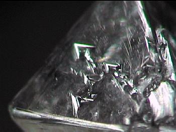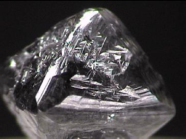 This is a floater diamond crystal with typical rounded octahedral faces and irregular crystal face growth