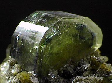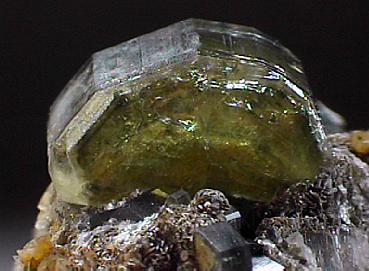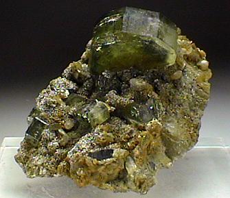 This specimen has a half dozen crystals of olive green apatite including the "dude" sitting at the top which is 2.6 cm across.