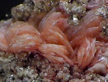 in length. Also present are crystals of pyrite to 0.6 cm across.  The matrix is predominantlt muscovite with minor pyrite.