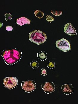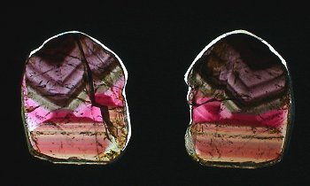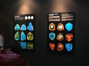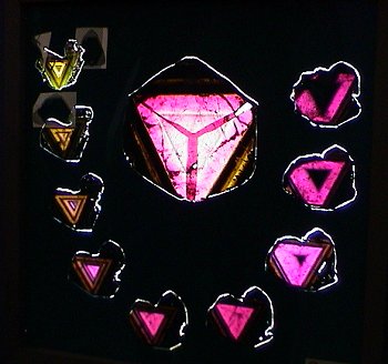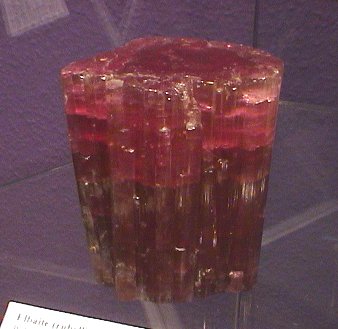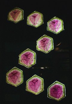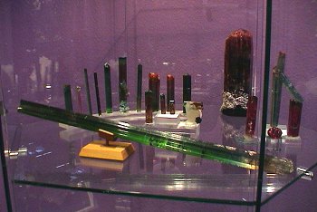 Towards the end of the display were an amazing array of tourmaline slices showing the dramatic color zoning developed during the growth of the crystals.  The majority of the slices were from Madagascar however many specimens of "Schorl" such as those from the Erongo Mountains were also displayed as slices.  To my amazement even they possess visible color zoning when sliced thin enough.   There were also numerous poster boards set up to explain the process of crystal growth and coloring.  This was one of the top highlights of the tourmaline display in my opinion.