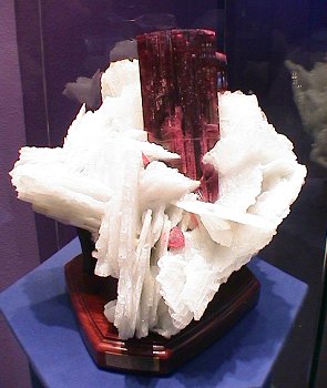 Keith and Mauna Proctor had a fine display with two cases of tourmaline crystals.  The large crystal in the left photo is about  40-45 cm in length and the image on the right is of the famous Rose of Itatiaia from the Jonas Mine in Brazil.