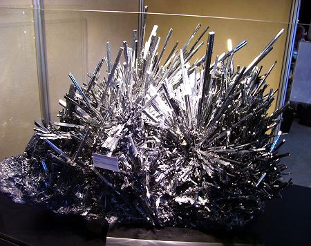 This 1+ meter specimen of stibnite from China was available from Marcus Budil for 120,000 Euros ($145,000).