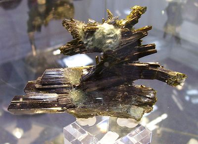 A 15 cm specimen of epidote with byssolite.