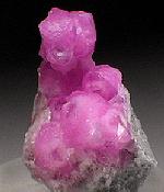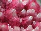 Cobaltoan Calcite from Morocco - French dealers Christophe & Brice Gobin were busy between Tucson and Sainte-Marie.  They rounded up the show's finest array of cobaltoan calcite specimens from Morocco.  Interestingly, they had two distinct types of material available from the same mine.  There were the specimens with the homogenously and richly colored pink calcite and also an unusual type that no one else had which had white scalenohedral calcite crystals, as cores, with reddish pink rhombic crystals of cobaltoan calcite around the base.  This resulted in crystals of reddish pink and white tips.  Quite odd, yet quite attractive in appearance.  I was fortunate to be able to look at all of their material prior to the show.  Though these were the best available here at the show I feel that the material available at the Munich Show last year was a step or two above these in terms of quality overall.