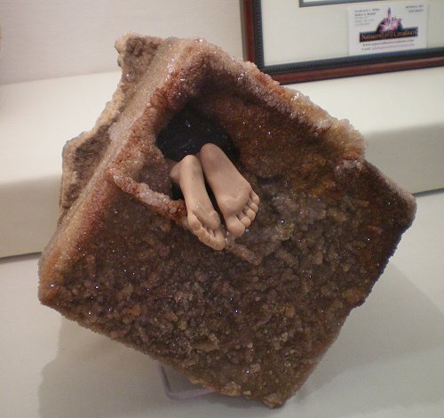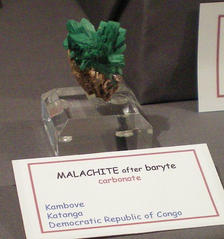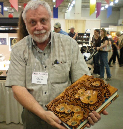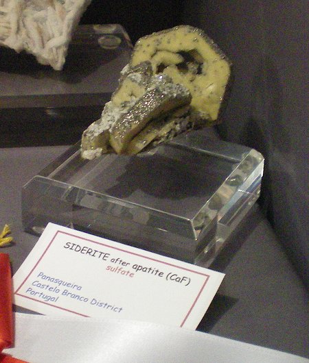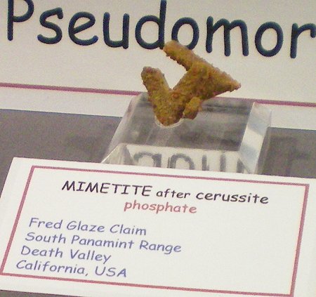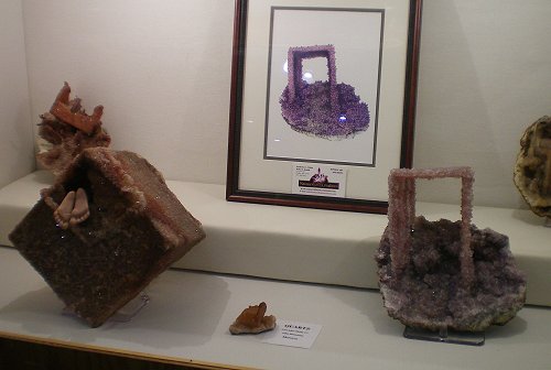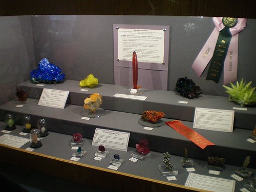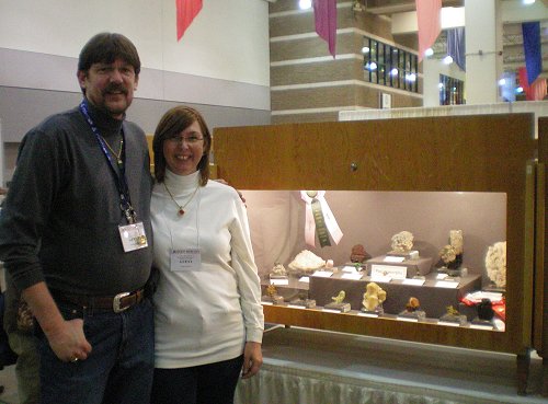I have to express my unsolicited two cents worth here and heap some praise on the TGMS award selection committee.  There were several cases up for consideration that were competing for the Desautels award and these cases were filled with screamingly gorgeous mineral specimens.  The committee kept the show theme in mind - Mineral Oddities - and made the best choice for 2009.  The award went to a very mineralogically interesting case that was painstakingly and earnestly assembled over many years one specimen at a time.  Stretch has taught himself all he knows about mineralogy and found pseudomorphs to be of keen interest to him.  It is gratifying to see the TGMS recognize a mineral case filled with specimens of mineralogical interest instead of the flashy stuff that justifiably seems to win year after year.  Big high five Stretch and Lynn!