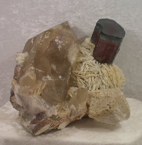 It feels like the market is changing and a sign of that might be the Stack's auction that was held on Friday the 13th (no really!!) at the Convention Center.  I went there on Thursday with Don Zowader to see what was being offered and I have to be bluntly honest here.  The people that put this auction together have brass huevos.  Their price estimates, descriptions and pictures in their catalogues were just head scratching.  Any benitoite offering is always going to be of interest to me and so I went to see them first.  Price estimate for one of the benitoite specimens was $35,000-$40,000. Huh?  What I saw were several light to moderately crossite included crystals of benitoite to about 3.5 to 4 cm cm on a specimen about 12 cm across.  The picture in the catalogue showed rich vibrant blue crystals which were in fact dull grayish blue.  The thing is worth maybe $750-$1000 due to the size of the crystals and the fact that some are or were not included that much.  There is damage all over this thing which the description fails to mention. The starting bid for this thing was $26,000 !! Are you kidding me??? That is just off the wall nuts!  I am happy to report that this one had no takers. In fact 90% of the specimens offered were not bid on I was told and as their archive of the auction indicates.