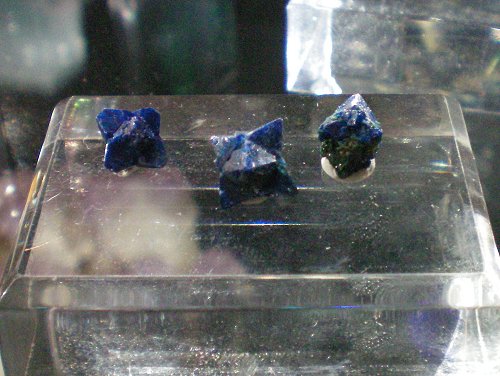A  fine group of three sixlings of cumengite from Baja California, Mexico in the Gobin's room.