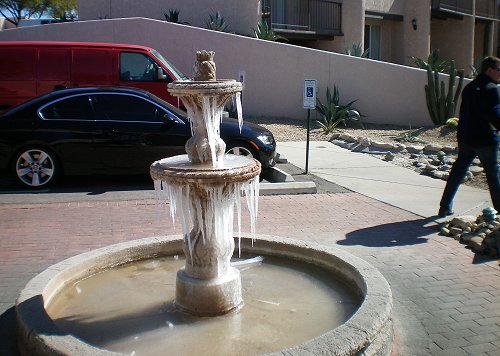 A fountain photographed on February 3 at the Westward Look.  That is Sandor Fuss moving out of view to the right.
