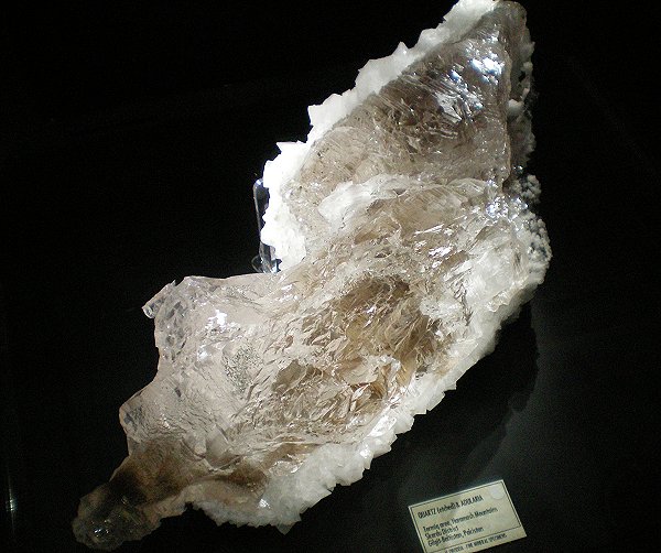 Herb Obodda has this 30 or cm etched quartz draped in adularia crystals from the Tormiq area of Pakistan.