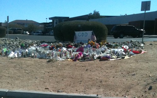 The spontaneous memorial that arose at the site of the shooting on the corner of Ina and Oracle....