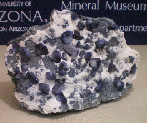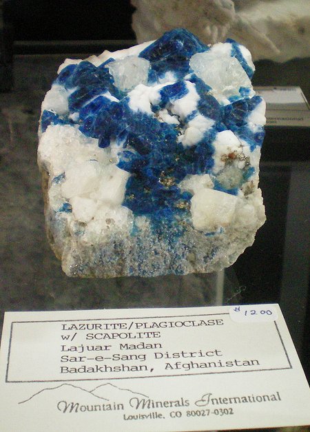T he Main Show and the rest of the Tucson mineral experience is over for 2011... whew.  It has become a marathon the last 10 years or so with a core group of about 500 people who arrive in mid January and then hang around for the grand finale 3-4 weeks later.  Heck, there is nowhere else I would rather be the truth be told. Before I launch into the cases there is one more new item to report on that Dudley Blauwet had.  These are lazurite after plagioclase specimens... everyone thinks... The work on these is still being done and it may be that the original crystals were hauyne replaced by feldspar then that was in turn replaced by lazurite.  These will require some more work to nail down more precisely but for now they are being called lazurite after plagioclase.  The replacement is only partial which is quite unusual as far as anyone who's had an interest in pseudomorphs will attest. They come from Lajuar Madan, Sar-e-Sang District, Badakhshan, Afghanistan.  Dudley had a dozen or so of these so I grabbed the three best small specimens with sharp defined crystal faces.