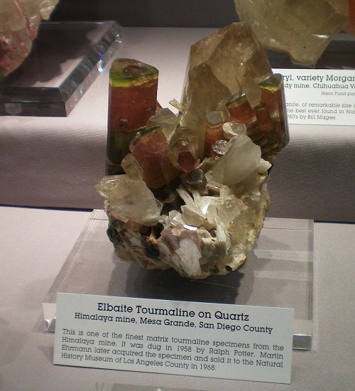 This 20 cm specimen from the Tourmaline Queen mine was on display in its own case...