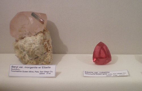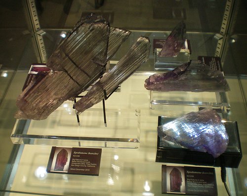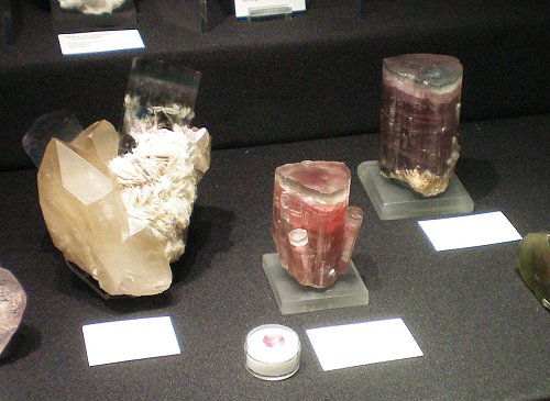 The small case next to the Queen mine specimen above had a display of recently mined kunzites from the Oceanview Mine in the Pala District.