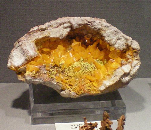 A stunning cabinet sized specimen of wulfenite from the Rowley mine.
