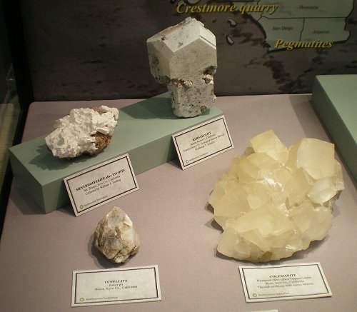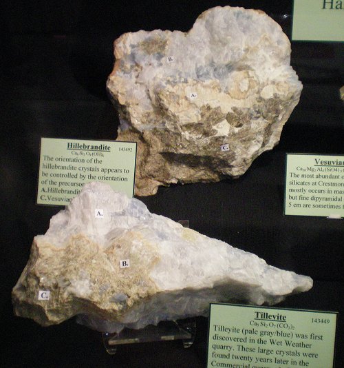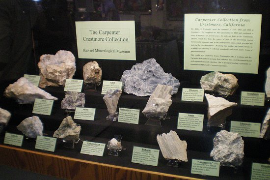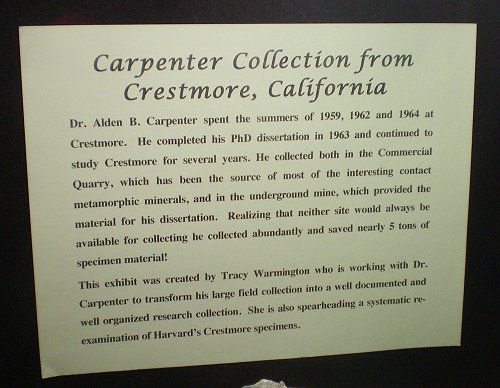 Bless the Harvard Museum!  They had a case of minerals from the Crestmore Quarry - a place often overlooked by collectors since the minerals found there don't exactly look like much more than road fill.  This locality has more mineral species than anywhere else in California and many type locality species too.