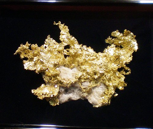 A 25 cm leaf of native gold from the southern Mother Lode country in Tuolumne County.